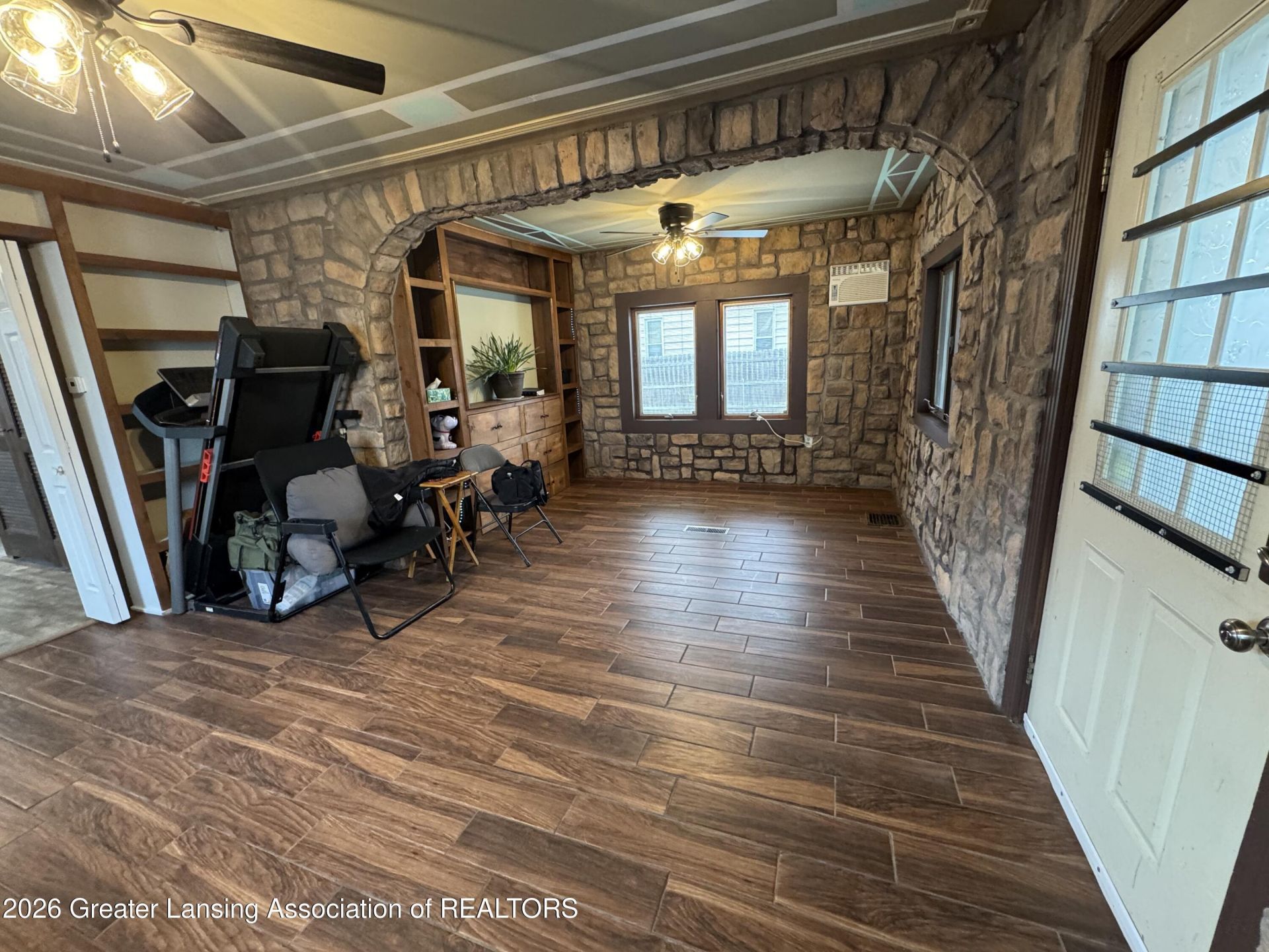 Welcome to 1021 Cleveland St. in Lansing?this 3 bedroom, 2 bath home offers charm, space, and thoughtful updates throughout that come together in a truly inviting way. Situated on an oversized lot perfect for gardening, this property offers both room to grow and space to unwind outdoors. Inside, youll find a warm and distinctive living area featuring a field stone accent living room with an archway, creating a cozy yet elegant focal point. The home boasts several updates, including granite countertops, tiled backsplash, and a tiled tub, blending modern finishes with classic character. Youll also appreciate the convenience of walk-in closets, offering ample storage throughout. Downstairs, there is an additional rec room in the basement that includes a kitchenette provides flexible space?ideal for entertaining, guests, or extended living arrangements. Outside, the property continues to impress with two outbuildings which include a large workshop and a separate hobby shed, perfect for projects, storage, or creative pursuits. The workshop could also be converted back into a large detached garage. As an added bonus, with the acceptance of a full price offer, the seller will contribute $10,000 towards a new roof, offering peace of mind and added value. This home is a rare find with space, character, and versatility?dont miss your opportunity to make it yours.